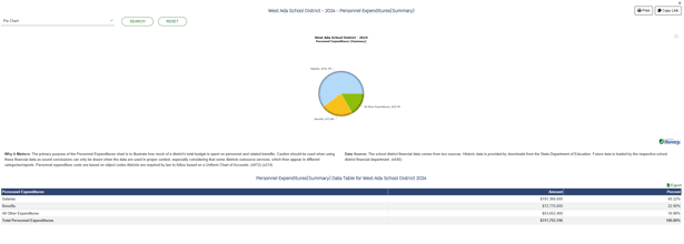 Updated "How the Money is Spent" scenario chart and "Personnel Expenditures" pie graph for Idaho districts.